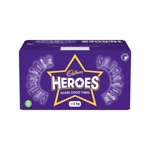 Cadbury Heroes Bulk Sharing Box This 2 kg Cadbury Heroes Chocolate Box is an excellent gift for Christmas, birthdays or any other occasion. Enjoy this assortment of delicious Cadbury chocolates and toffees, made with cocoa beans that are sourced through the Cocoa Life Sustainability Program.